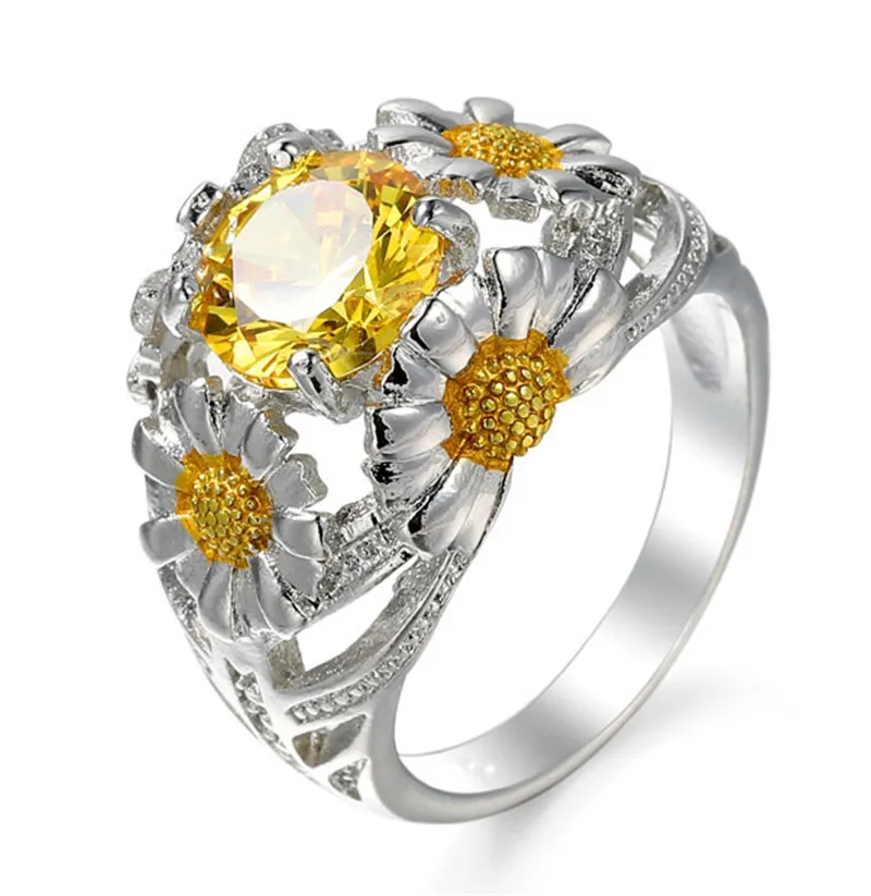 Yellow Crystal Flower Wedding Rings For Women Fashion ...