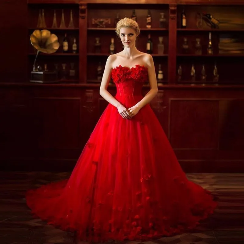 High Quality Handmade flowers Red Wedding Dresses 2017 ...