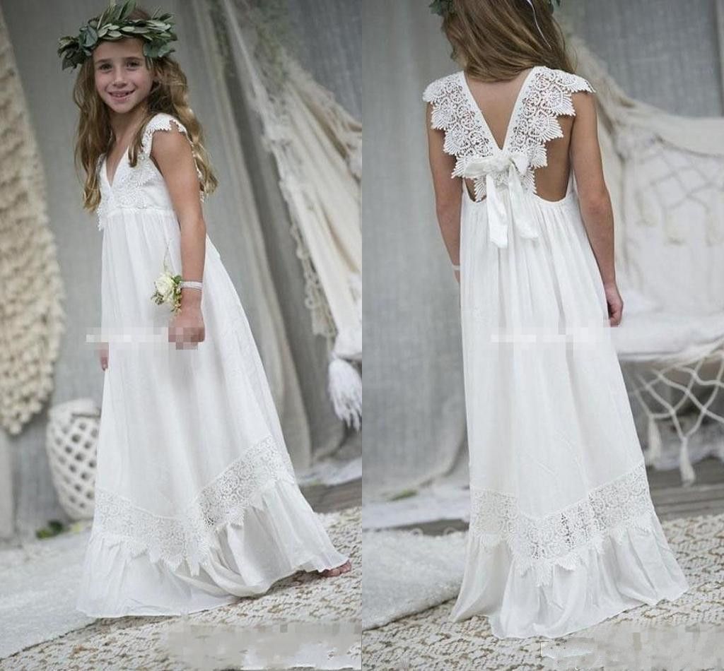 2018 New Arrival Cheap V Neck Boho Flower Girl Dresses For ...